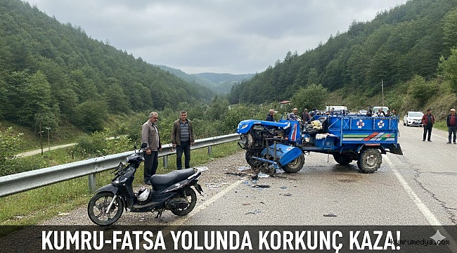 FATSA - Fatsa ilçesinde sabah saatlerinde trafik kazası meydana geldi. Edinilen bilgilere göre, Fatsa'nın Ayazlı Mahallesi'nde, Kumru–Korgan karayolu üzerindeki Sabri Usta mevkii civarında hareket halinde olan bir tarım aracı (patpat) ile bir motosikletin çarpışması sonucu kaza yaşandı.