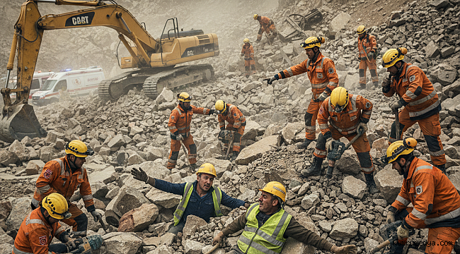 Görgü tanıklarının ifadelerine göre olay, birkaç saniye içinde gerçekleşti. Şiddetli gürültüyle birlikte yamaçtan kopan devasa kaya parçaları, alanı tamamen kapladı. O sırada araçların içinde bulunan iş makinesi operatörü ve kamyon sürücüsü göçük altında kaldı.